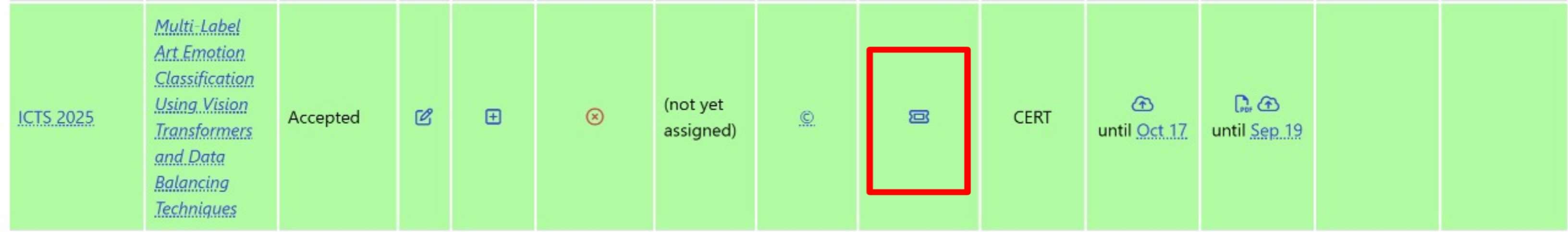 Lastly, navigate back to the homepage. Here, you should be able to view the active paper you registered for at the ICTS 2025 conference.