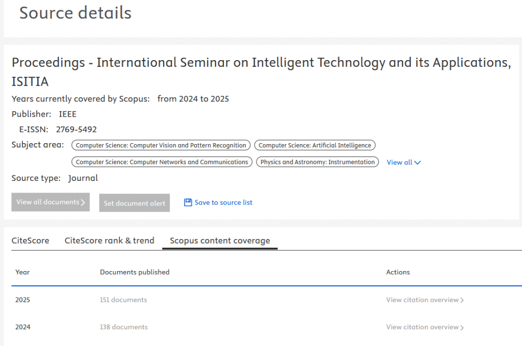 As you can see on the links list on the right side of the page, all previous ISITIA Proceedings since 2015 are indexed in Scopus and IEEExplore. Since 2024, ISITIA has also been indexed in Scopus in the source level.